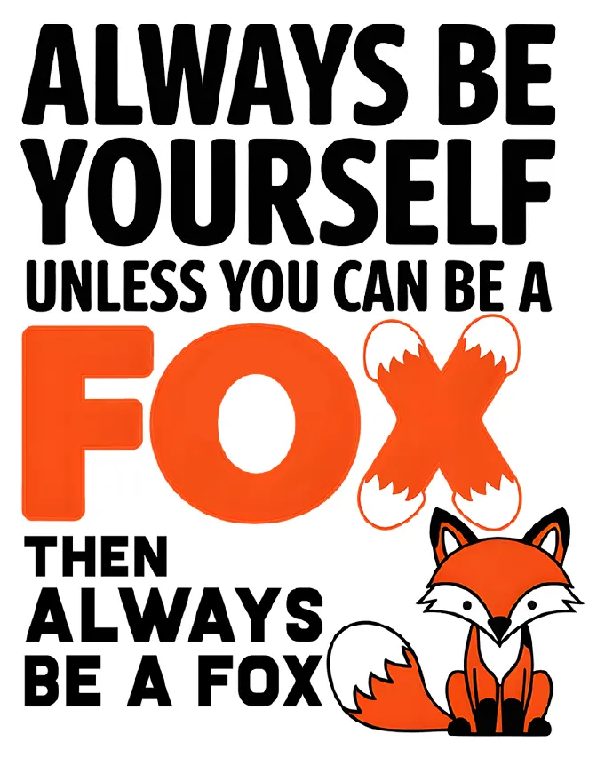 The “Always Be Yourself (Unless You Can Be a Fox)” Sticker blends positive vibes with playful humor. Featuring bold lettering and an adorable fox illustration, this design puts a fun twist on a classic inspirational quote. Printed on high-quality, waterproof vinyl, it’s built to last while keeping its bright colors and crisp details. Whether you stick it on your laptop, water bottle, journal, or workspace, this sticker adds personality, charm, and a little fox-like confidence to your everyday gear. Perfect for animal lovers, optimists, and anyone who enjoys lighthearted motivation with a sense of humor.