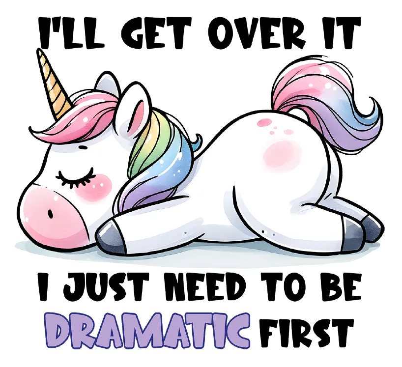 The Dramatic Unicorn Sticker perfectly captures that mood when you will be fine… just not yet. Featuring an adorable, exhausted unicorn paired with a hilariously relatable phrase, this sticker brings humor, sass, and pastel charm together in one irresistible design. Printed on high-quality, waterproof vinyl, it’s durable enough for everyday use while staying bright and vibrant. Stick it on your laptop, water bottle, notebook, phone case, or anywhere you want to show off your personality. Ideal for drama queens, overthinkers, and anyone who embraces their feelings with humor and flair, this sticker makes a great gift—or a perfect treat for yourself.