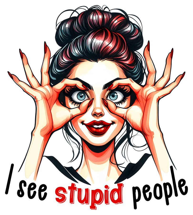 This sticker features a confident, sassy design of a woman making binoculars with her hands, with the playful phrase “I See Stupid People” underneath. It’s a fun and bold way to show off your sarcastic side and add a bit of humor to your personal items. Whether you’re putting it on your laptop, phone case, or water bottle, this sticker will definitely get attention. It’s perfect for anyone who loves bold, unapologetic humor. Add it to your collection today and share the laugh!