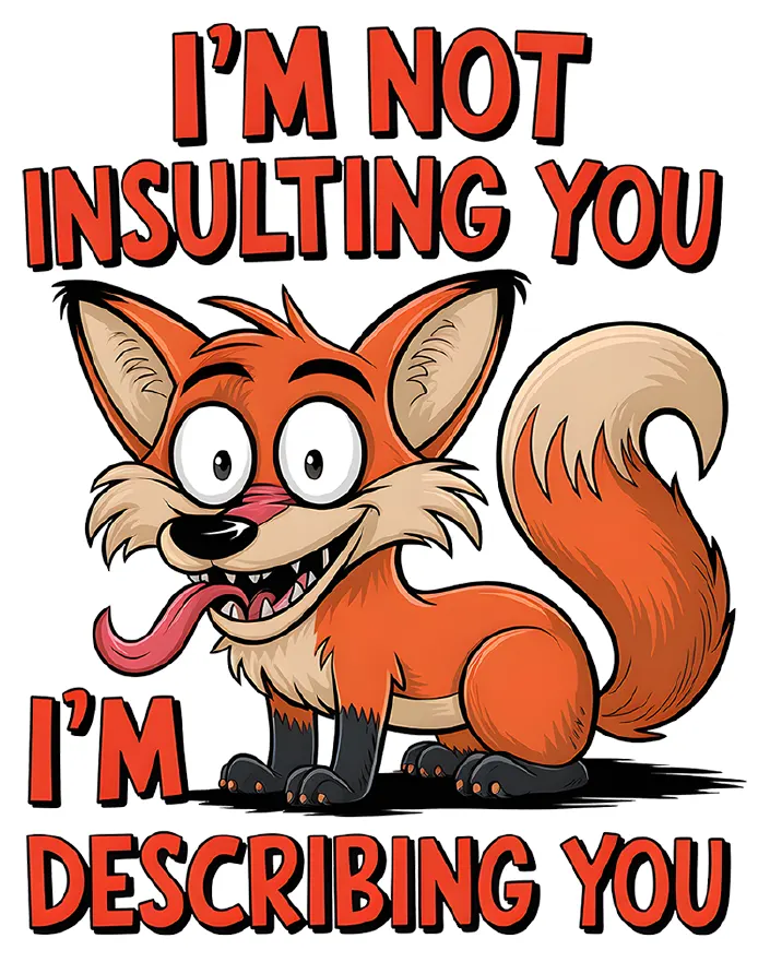 This hilarious sticker features a mischievous fox with a tongue-out grin, paired with the witty line, “I’m Not Insulting You, I’m Describing You.” Whether you’re looking to add some humor to your laptop, water bottle, or desk, this sticker brings fun and personality to any surface. With its vibrant colors and eye-catching design, it’s a must-have for anyone who enjoys playful humor. Get yours today and let your space reflect your sense of humor!